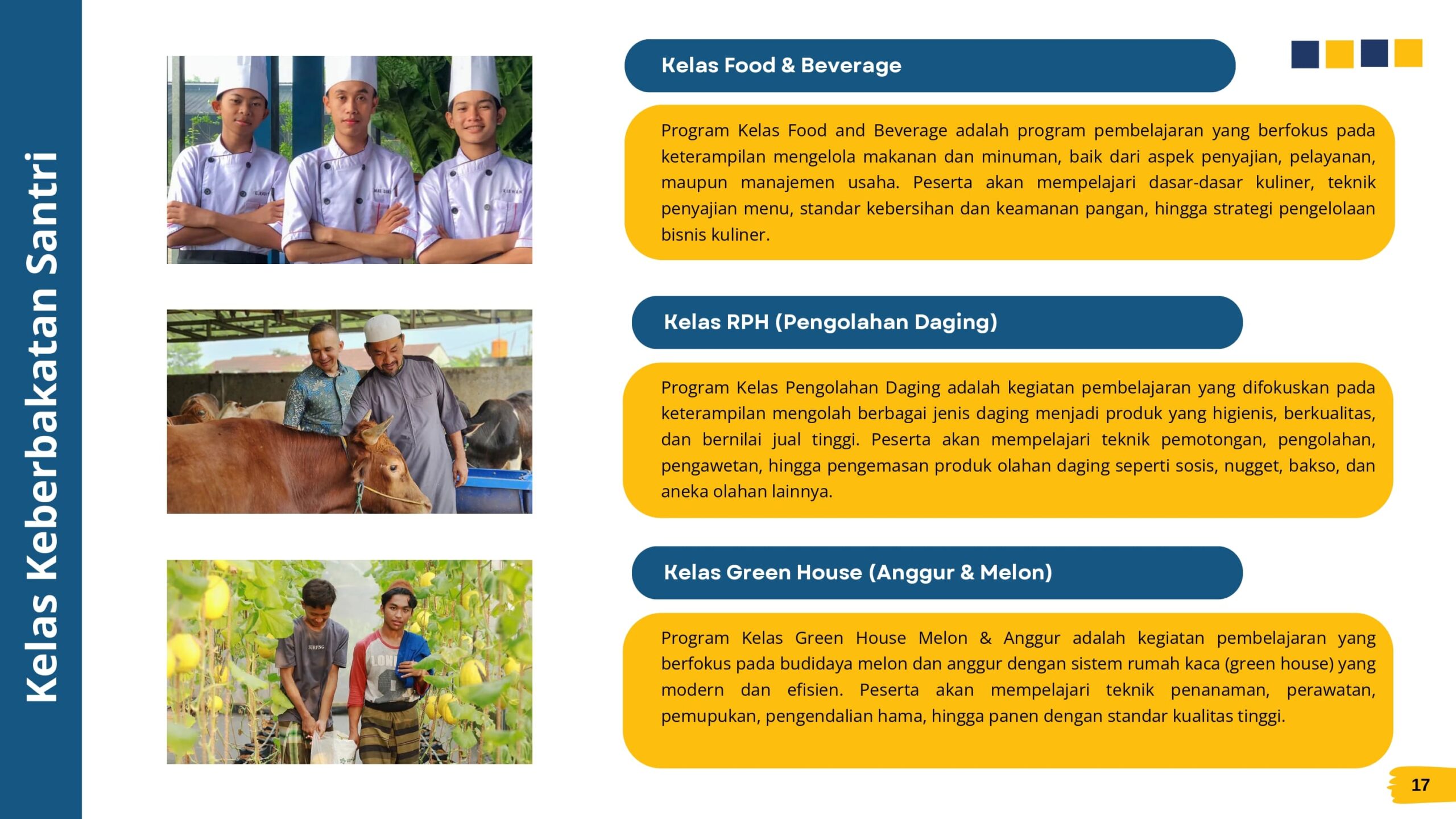 - Siap mengikuti program entrepreneur, pertanian, peternakan, dan perdagangan.